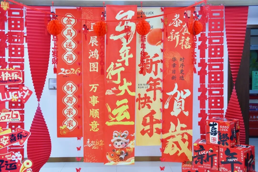 走进活动现场,红色主题背景与灯笼、春联等传统装饰交相辉映,构筑出一方年意融融的文化空间。大家纷纷驻足合影,在镜头前展露笑颜,定格新春的美好瞬间,也留存下团队温情的一幕幕。