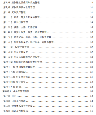 3、针对公司的现状,从各个部门的职责、流程出发,重新制定公司的制度汇编,并且对重点制度如《财务管理制度》进行重点修订: