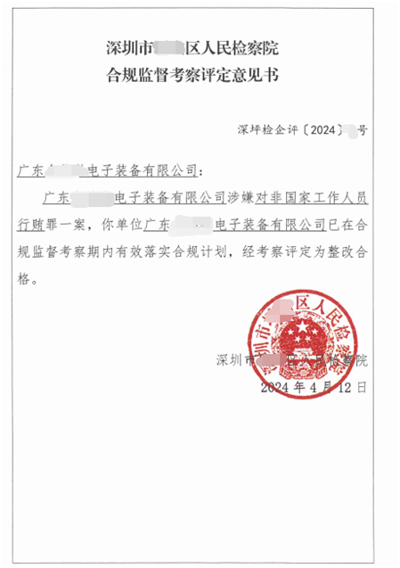 终于,在合规顾问团队以及公司负责人和管理团队的共同努力下,X公司通过了合规整改验收,X公司也免于刑事起诉。